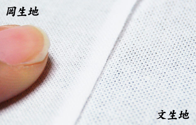 手ぬぐいの生地には「文(ぶん)」と呼ばれる生地と「岡(おか)」と呼ばれる生地の2種類あります。正確に言うと、特文や特岡とよばれるものもありますし、文生地の事を総理(そうり)と呼ぶ場合もあります。一概にどちらが良いとは言えませんが、生地の目が細かいのは岡生地です。